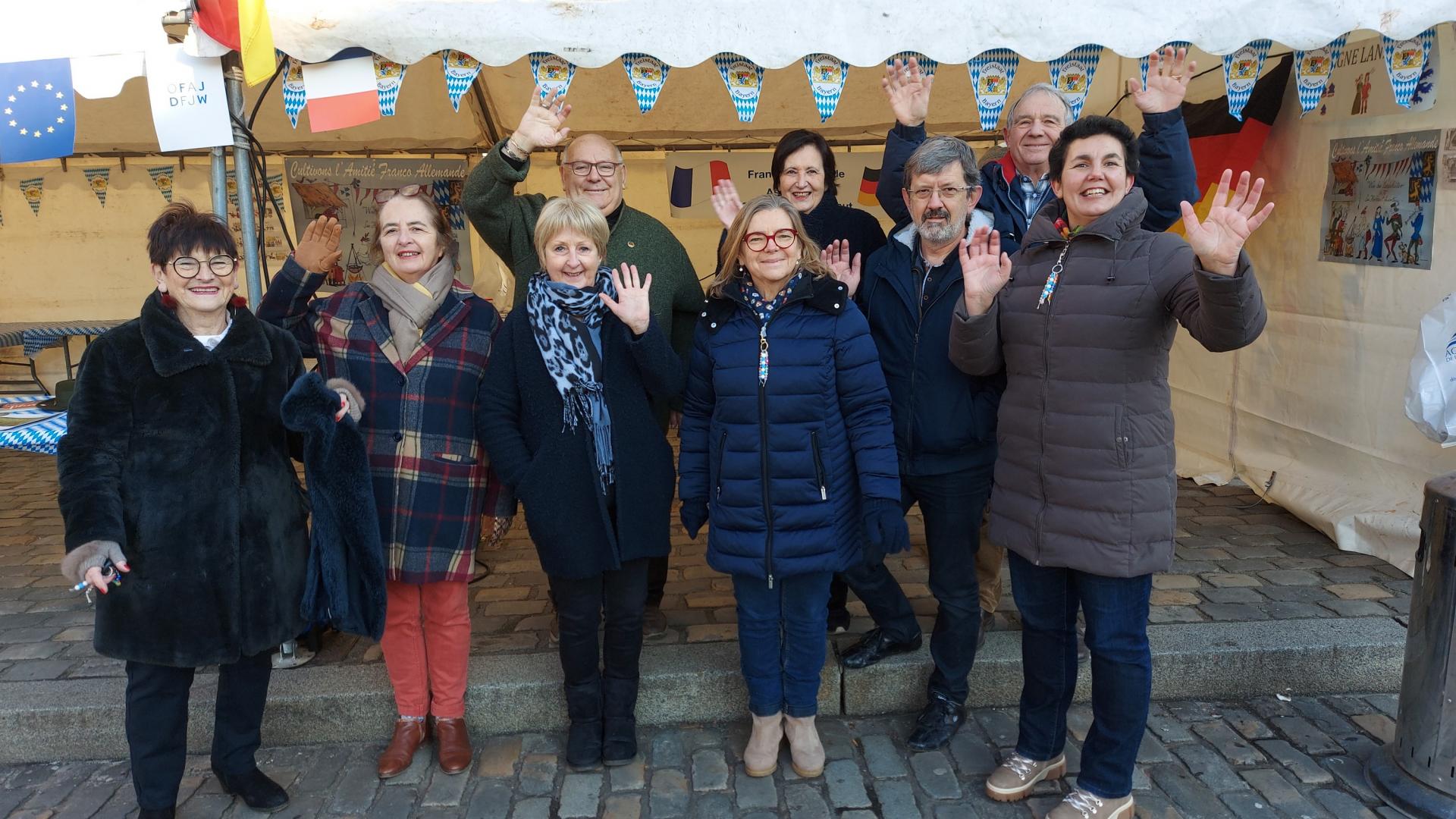 Le froid et le soleil était de la partie en cet aprés-midi . L'énergie mise en place par Michèle et toute son équipe a dynamisé cette rencontre avec tous les amis de l'association. Les passants, les élus, la presse ont pu découvrir ou redécouvrir les activités de l'association, se réchauffer au son de la musique et goûter les Bretzels, les saucisses blanches et boire une biére allemande. Nos photographes étaient présents pour illuster ces instants d'échange et de convivialité.. Cette année on célébre les 60 ans de la signature du traité de L'Elysée. Le 22 janvier 1963, le Général de Gaulle et Konrad Adenauer signaient le Traité franco-allemand appelé Traité de l'Élysée.